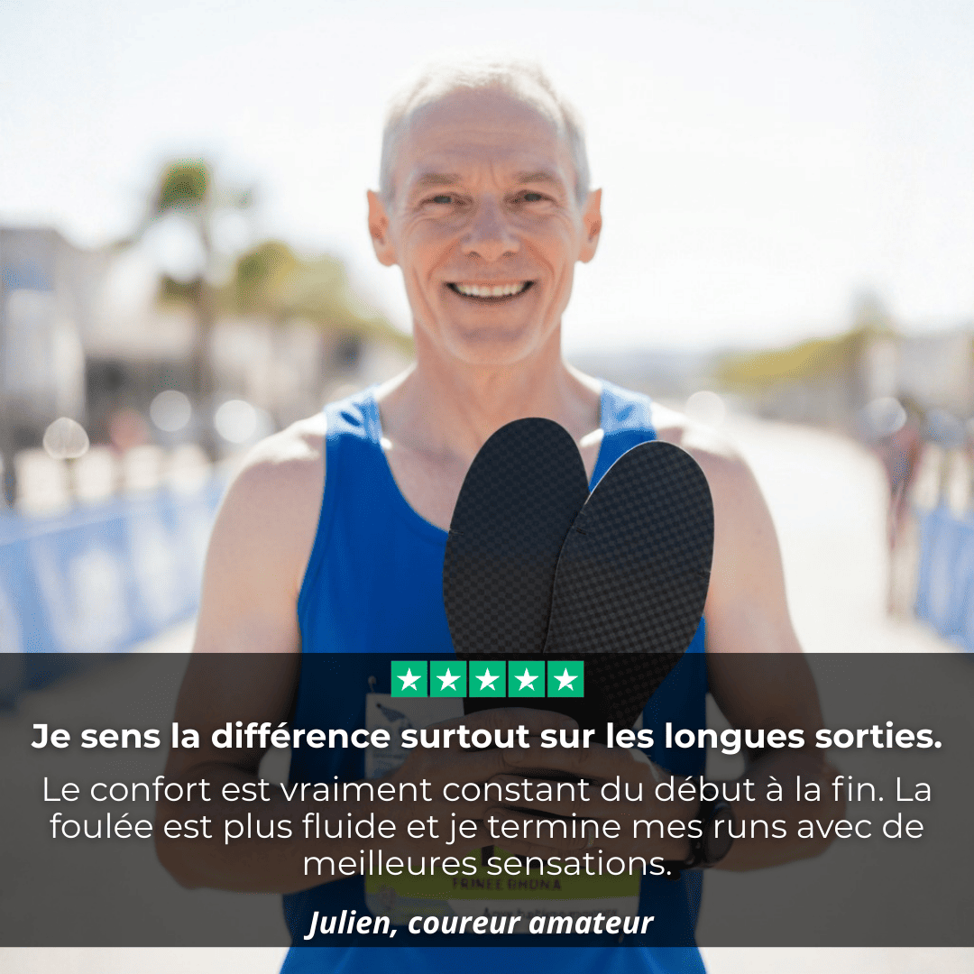 Au-delà de la performance, nos semelles protègent vos articulations et réduisent les douleurs liées aux impacts répétés.