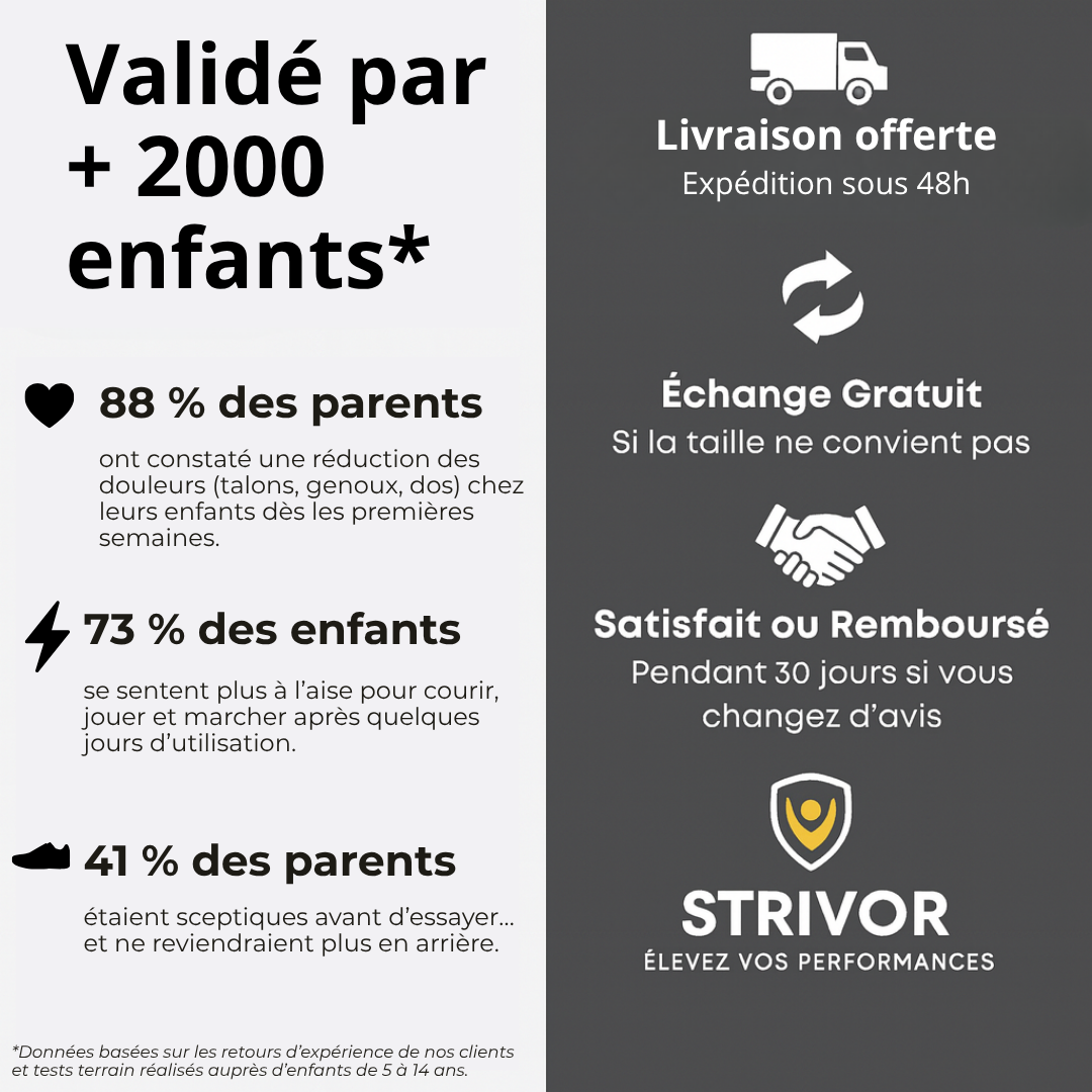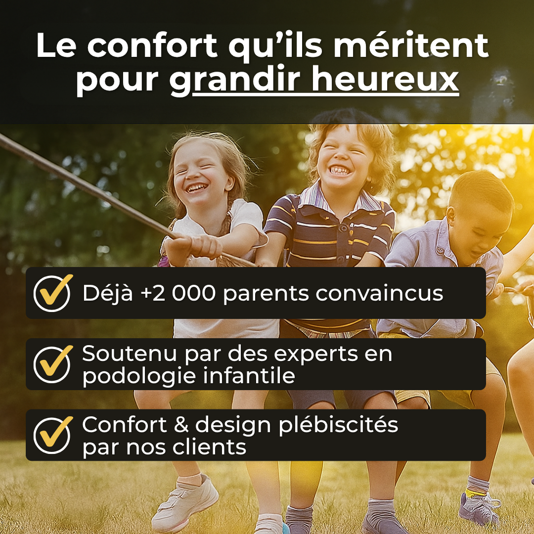 🦶 Soulage les douleurs de croissance 🌱 | 💪 Soutient la posture naturellement ⚖️ | 😊 Le confort qu’ils méritent ❤️