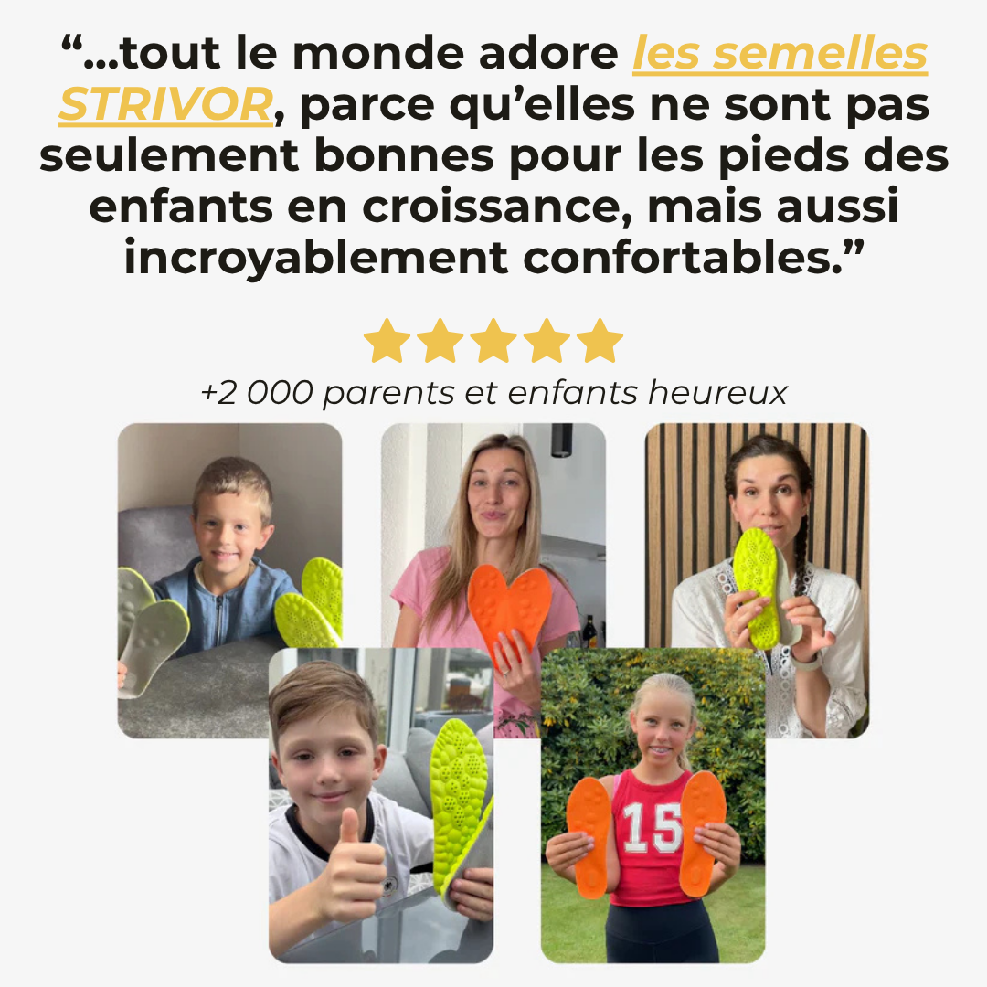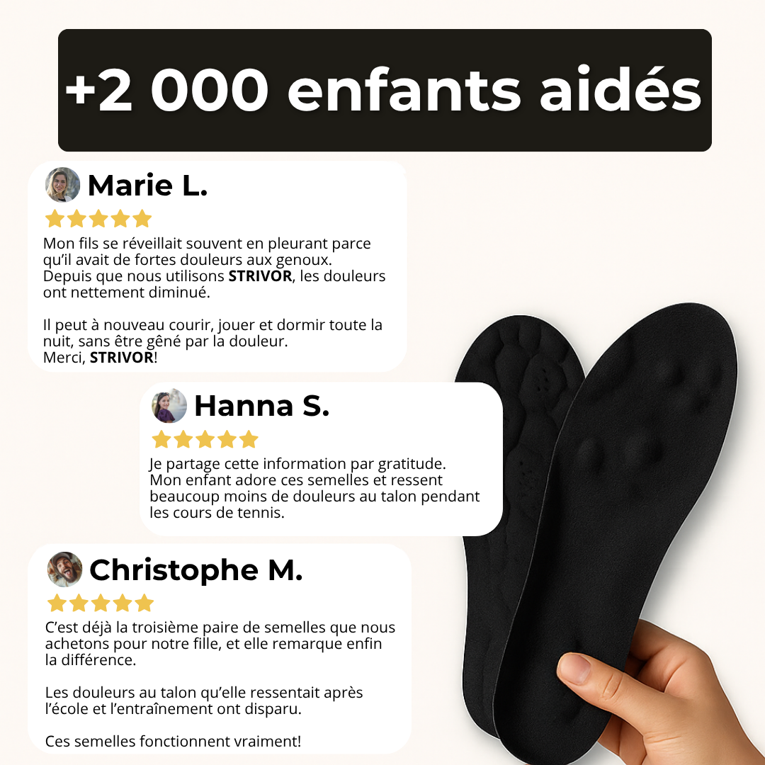 Soulagez instantanément les douleurs de croissance et améliorez la posture de votre enfant. Des semelles légères, confortables et validées par des professionnels.